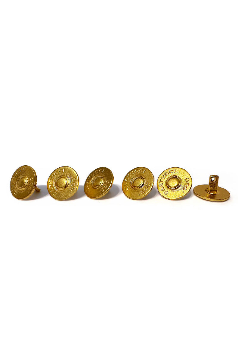 Each button showcases a unique blend of elegance and eco-consciousness. Their intricate design and meticulous craftsmanship exemplify Cartucci's commitment to reimagining luxury and celebrating the beauty of reinvention.