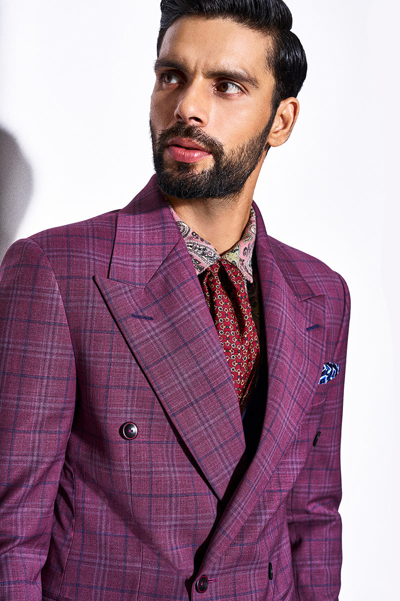 Looking for something that fits the sweet spot between formal and casual? Our Havana checks suit is the answer! A classic suit in a flattering double breast tailored fit, it features wide peak lapels and flap pockets. Complemented with our matching high-waist single pleat trousers.